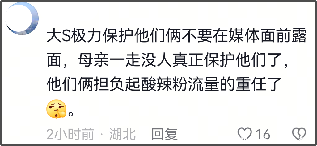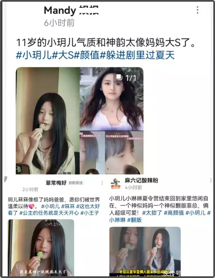 就像小S家的三个女儿,过早的曝光,导致现在画风网红化,失去特质。但也有网友表示自己的孩子想怎么晒就怎么晒,小S二女儿都能说自己像大S,蹭大S的热度,大S亲生的孩子还得藏着掖着?