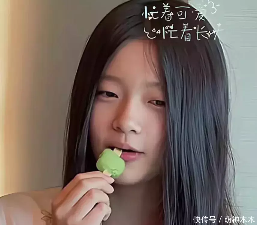 11岁的小玥儿一头黑长直,看上去非常文静,穿着居家服坐在那里吃雪糕,手指纤细修长,整个人神态像极大S。